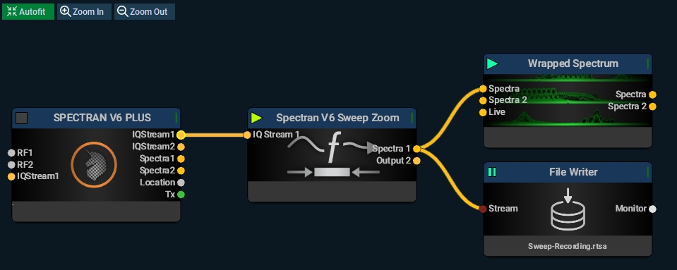 In sweep mode, the Spectran V6 sweeps across frequencies using the RTBW filter, similar to how Ekahau Sidekick2 works. However, the Aaronia RTSA offers full control over bin length/RBW. Upgrading the RTBW filter on the Plus model enables sweeping at speeds up to 1 THz/s. The ECO model can sweep up to 500 GHz/s without additional licensing and up to 3.2 THz/s with the fast-sweep license.