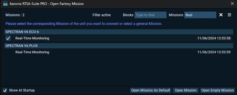 Aaronia Software comes with two Real-Time Missions, one for Eco and one for Plus, these missions will use the recommended settings for a real-time view of 2.4GHz.