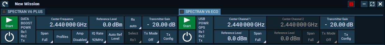 The most important settings that you would need you will find in the top menu after you added the block. Here you set the Center Frequency, Reference Level etc above from your mission.