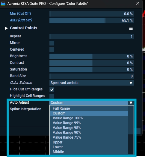 A few setting you can do here, for example change Max (cut off) to around 80% and change the Color Scheme. In the picture below I have set it to Spectran color scheme, and 81.9% Cut Off.
