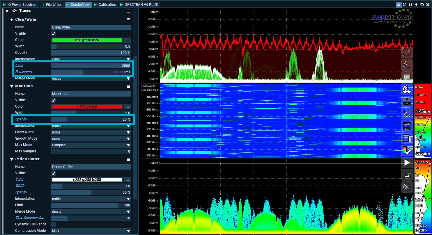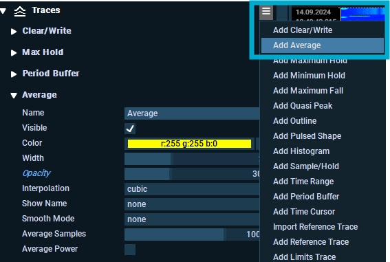 A trace legend makes it easier to quick-access all traces, for example if you need to clear the Max Hold data or by pressing the square next to the trace you can hide traces with ease.