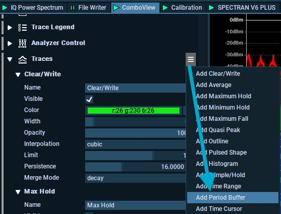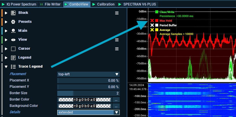 You can add a lot of different traces to the top-spectrum view in the ComboView block by right-clicking inside the view to get a list of all the traces, or you will find them inside the block itself.